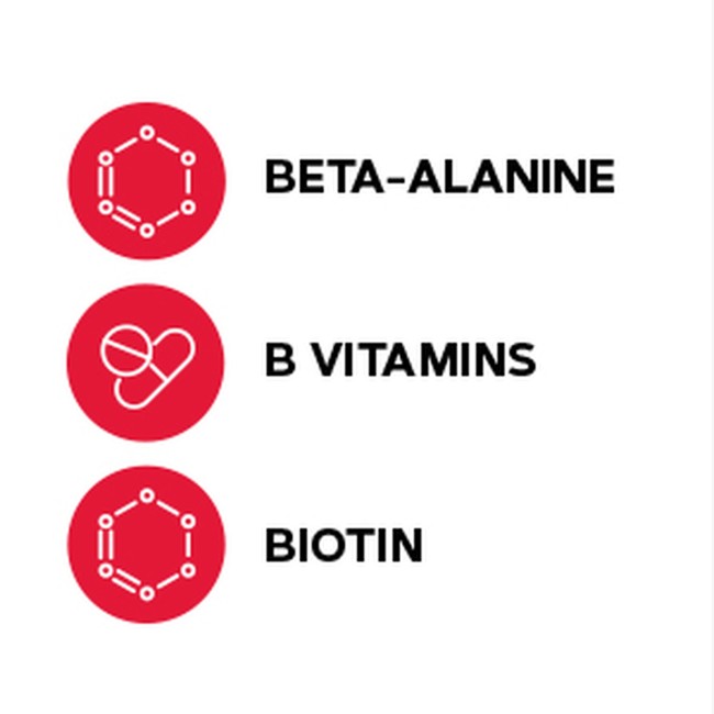 Formula imbunatatita cu beta-alanina o substanta cu efect de tampon al ph-ului din musculatura si cafeina anhidra care ajuta la producerea de energie si creste puterea de concentrare.